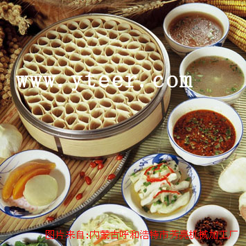 莜面窩窩的做法: 將莜面加一倍開水或冷水和制,用手掌在光滑的板面上推一個,食指卷一個,做成如‘貓耳朵’似的筒狀形,長寸許、薄如葉、色淡黃。做好后,挨個站立并排在籠內酷似蜂窩。熟時即香味撲鼻,又透明美觀; 推莜面窩窩的技術非常難掌握,沒有經過幾年的鍛煉,是很難做好的。即使是推莜面窩窩的高手“老師傅”一天也只能推二三十籠(一籠一般100個卷),一籠的手工費也有幾元錢,而且不能批量生產,市場價很高。我公司研制生產的莜面窩窩機能讓每個人成為推莜面窩窩的高手、成為莜面窩窩的批發商。更適合一些飯店使用;